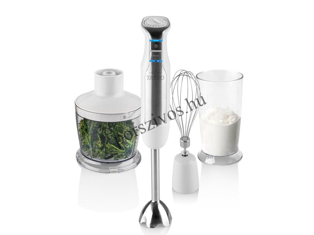 Az ETA Tasso botmixer szetthez jár egy 500 ml-es aprító edény, mely segítségével feldarabolhatja a zöldségeket, összeállíthatja a tésztát, diót apríthat, vagy akár a jeget is frissítő jégkása alappá varázsolja.Minden konyhában helyt állAz elmúlt évtizedekben a botmixer a legtöbb háziasszony konyhai felszerelésének szerves részét képezi, mivel praktikus, nem sok helyet foglal, de teljesítménye elég nagy a mindennapi főzésnél szükséges teendőkhöz. Az ETA Tasso 600 W-os motorral rendelkezik, és a folyamatos sebességszabályzásnak köszönhetően alkalmazkodik az éppen felmerülő igényekhez. A rozsdamentes acél elemeknek, és az ergonomikus kialakítású műanyag tartozékoknak köszönhetően teljes értékű segéd a konyhában, és nem mellesleg tökéletesen illeszkedik a kézbe.Segítség, könnyedénA botmixer egyszerű összeszerelése, kezelése és karbantartása nagy könnyedséget jelent a használat során. Használat után egy egyszerű mozdulattal szétszerelheti a mixert, és meleg vízben leöblítve használatra kész a következő főzési fázisra. A tartozékok cseréje szinte gyerekjáték a gyors zár funkciónak köszönhetően, hiszen egy pillanat alatt kicserélheti a botmixert az aprítóra vagy a habverőre, attól függően, hogy éppen mire van szüksége. Ha maximális teljesítményre van szüksége, akkor pedig a TURBO gomb rendelkezésére áll majd a használat során!Tulajdonságok BotmixerNagy teljesítményű és csendes DC motor 600 W teljesítmény felvétellelKényelmes használat az ergonomikus fogantyúnak köszönhetőenFolyamatos sebesség szabályozás, ami lehetővé teszi az egyéni sebesség beállítást igénye szerintTURBO gomb a maximális fordulatszámértNagyon gyors összeszerelés, egyszerű vezérlés és könnyű karbantartásMűködési fényjelzőTápkábel hossza 1 mTartozékok széles skálája:Levehető botmixer rozsdamentes acélbólHabverő tartozékHajtómű az optimális fordulatszám biztosításáhozKis 500 ml vágó tartozéksarló alakú kés rozsdamentes acélbólcsúszásmentes lábak biztosítják a stabilitástMunka edény kapacitása 600 ml Besorsolás nélkül:Fogyasztás merülő mixer: 600 WSebesség száma: 6Folyamatos szabályozás: IgenPulzusos kapcsoló: IgenFunkciók, tartozékok: mixelő edény, mixelés, szaggató, habverés,Minőségjelzés dTest: NemEnergiaforrás: hálózatiGarancia: 24 hónap Termék méretei:Szélesség: 6.5 cmMagasság: 39.0 cmHosszúság: 7.0 cmTömeg: 1.32 kg Doboz méretei:Szélesség: 23.5 cmMagasság: 25.0 cmHosszúság: 13.5 cmTömeg: 1.57 kg